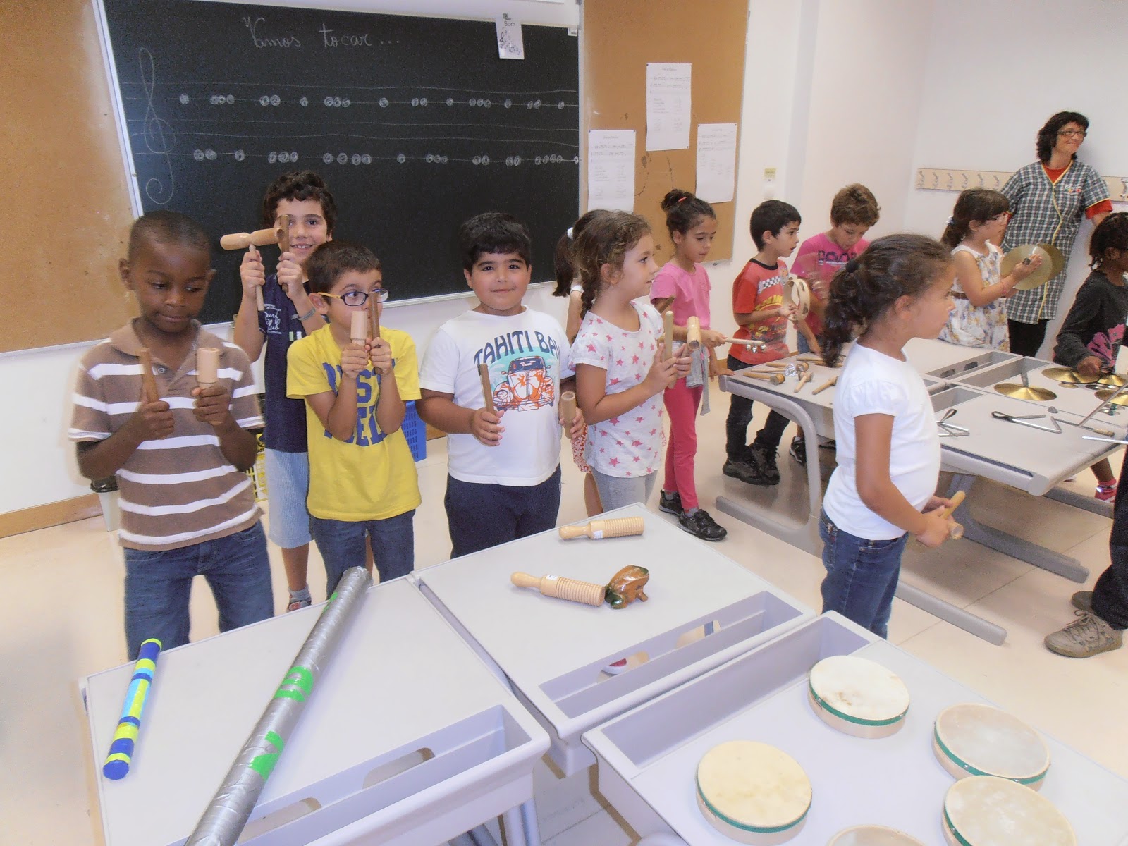 A Professora Melanie falou-nos sobre ritmo e apresentou-nos um instrumento chamado ukulele.